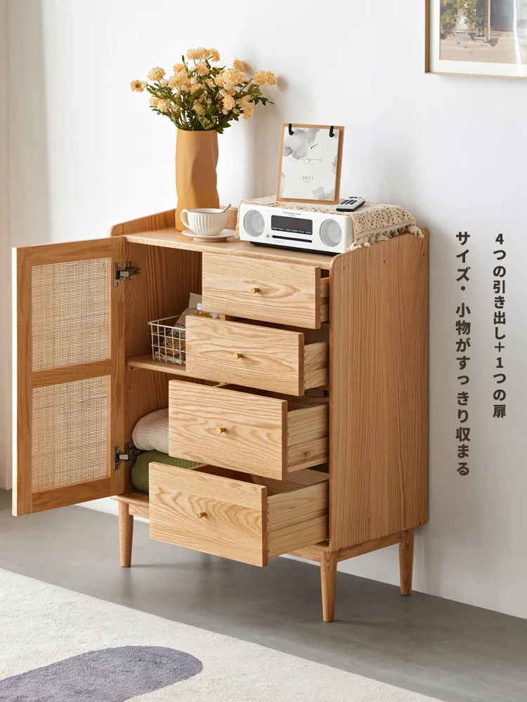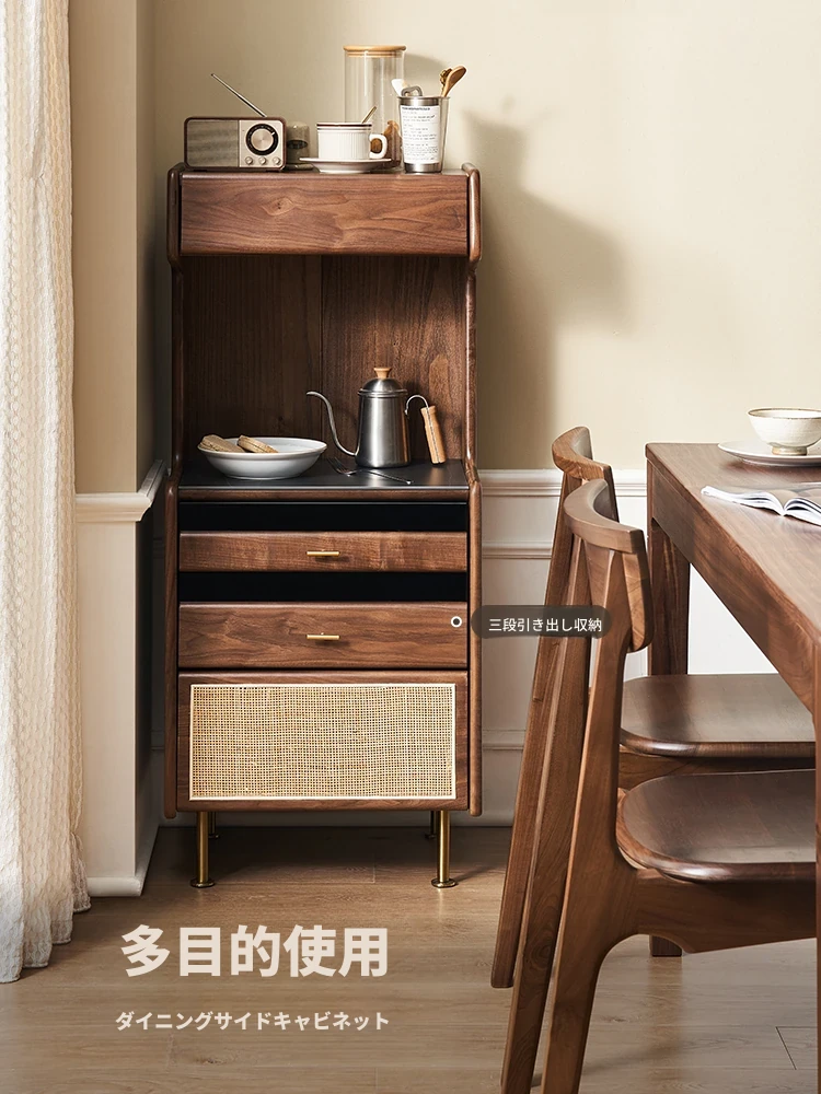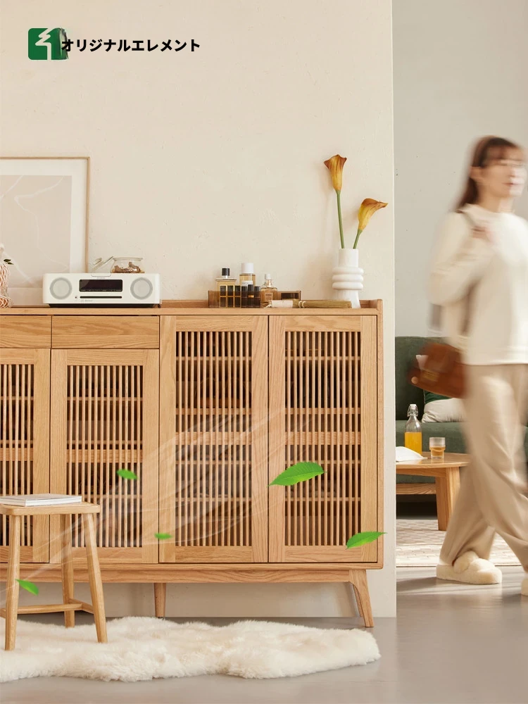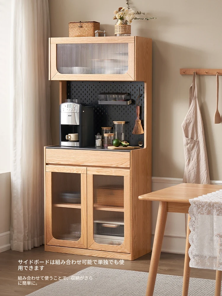 オリジナルエレメントの全無垢材食卓サイドキャビネット|シンプルでコンパクトなデザイン|橡木製の多機能収納キャビネットN1142|おしゃれなダイニングにぴったり!