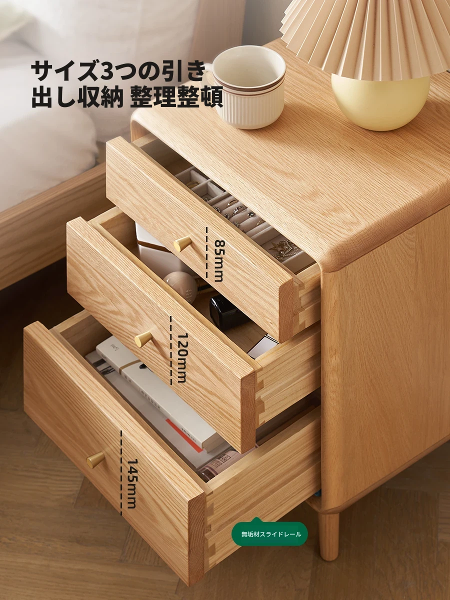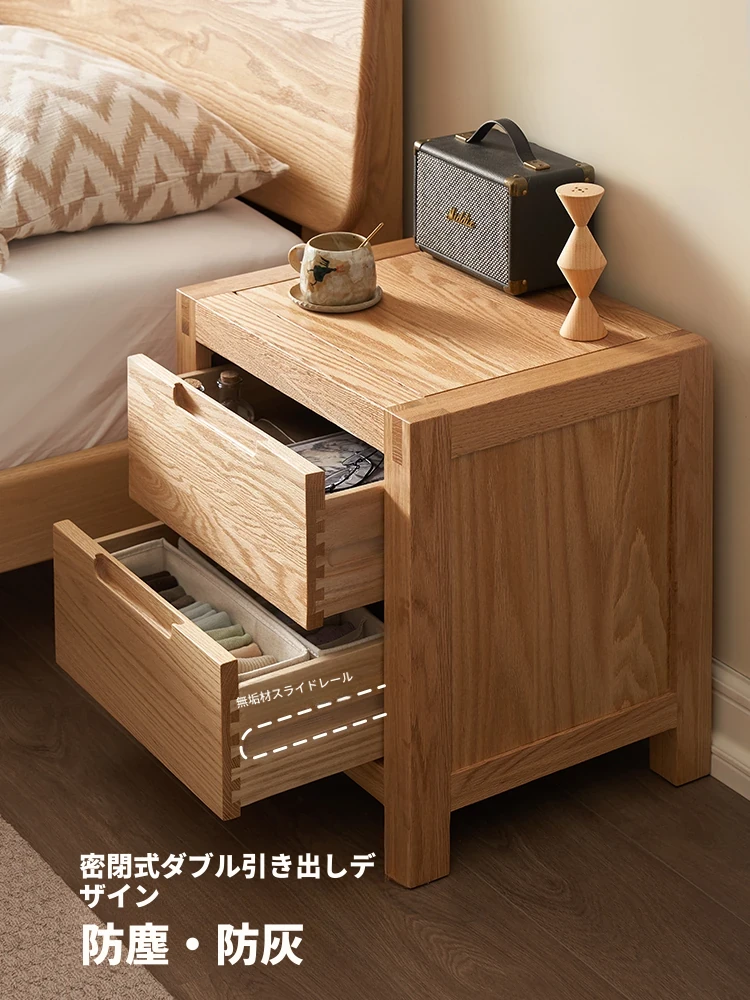 原素材のモダンシンプルなベッドサイドキャビネット - 北欧スタイルのオーク無垢材製収納家具 B3023、あなたの寝室にぴったりのエレガントで機能的なデザイン!