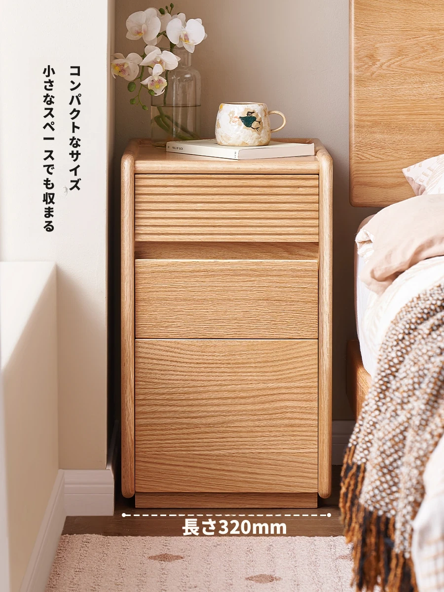 オリジナルエレメント天然木製ベッドサイドテーブル|現代的でシンプルなオークのデザイン|スリムでコンパクトな収納キャビネット!おしゃれで機能的、あなたの寝室にぴったり!L7027