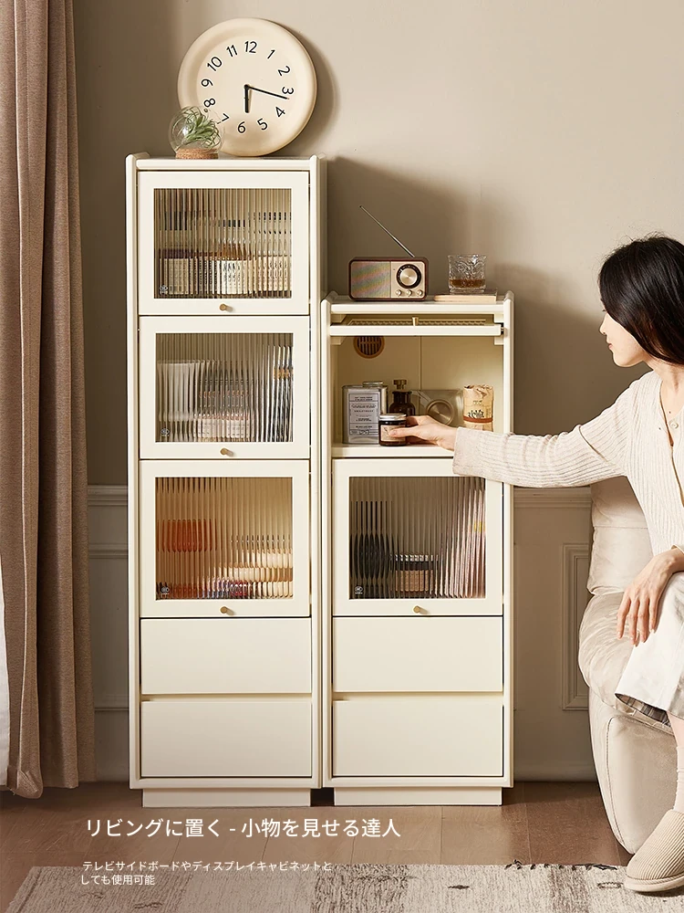 オリジナルエレメント無垢材クリーム風デザインのモダンシンプル壁寄せストレージキャビネット 超薄型ベッドサイドキャビネット M803A - スタイリッシュな収納でお部屋が広がる!