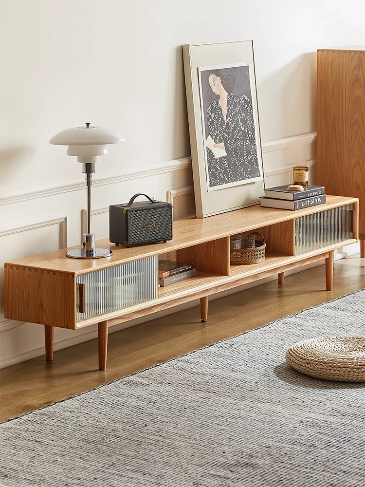 北欧スタイルのオーク無垢材テレビボード - おしゃれなガラス扉付きワインキャビネット、現代的でシンプルなリビングルーム収納F8102