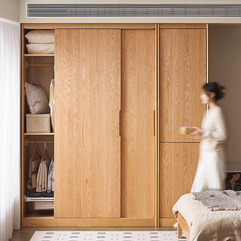 原木素材のモダンでシンプルなプッシュ・スライド扉付きクローゼット - 室内整理に最適なK7041スタイルの洋服ダンス。おしゃれなデザインで、あなたの寝室をスマートに演出します!