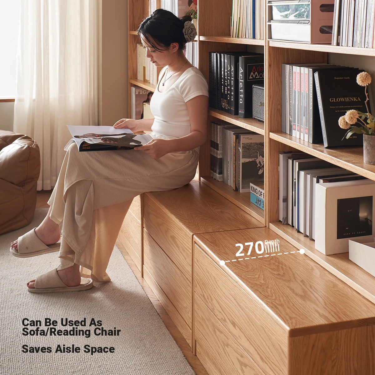 "Premium Solid Wood Full Wall Bookshelf - Floor-to-Ceiling Combination Display Cabinet with Slim Design for Stylish Home Decor | Model L7176"