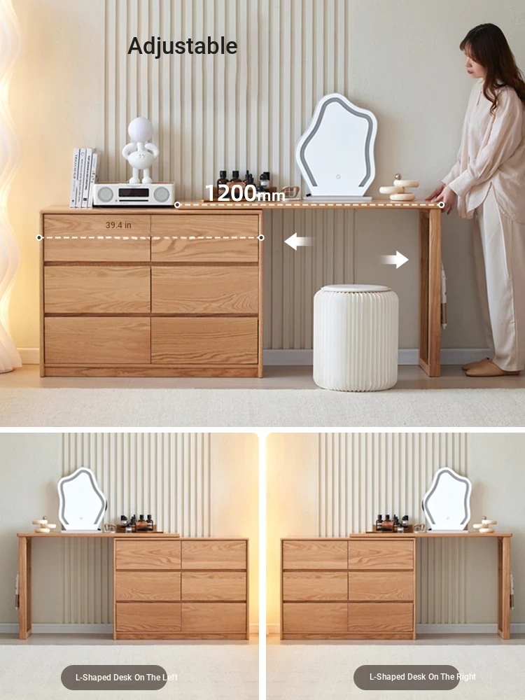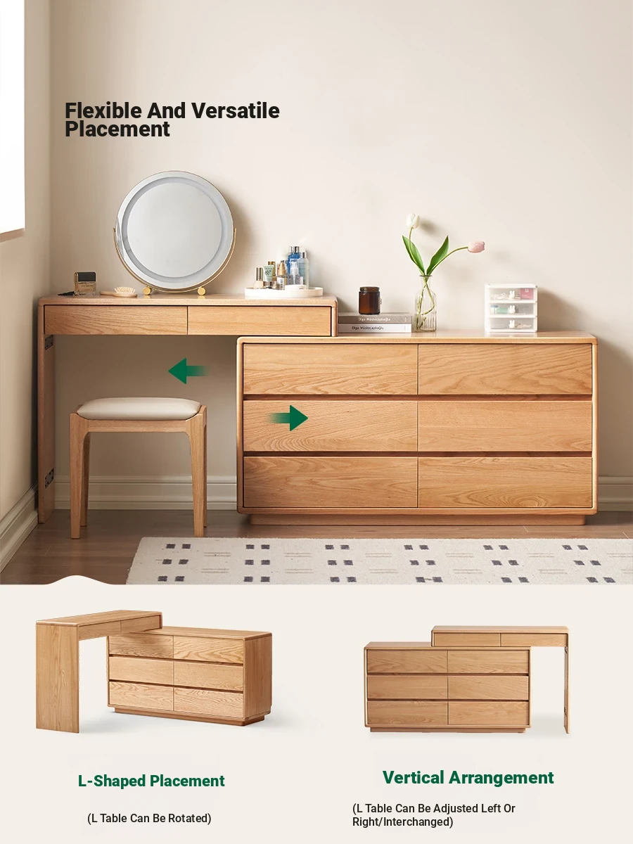 "Modern Minimalist Solid Oak Makeup Vanity & Dresser Set - Elegant and Functional Bedroom Dressing Table L7034"