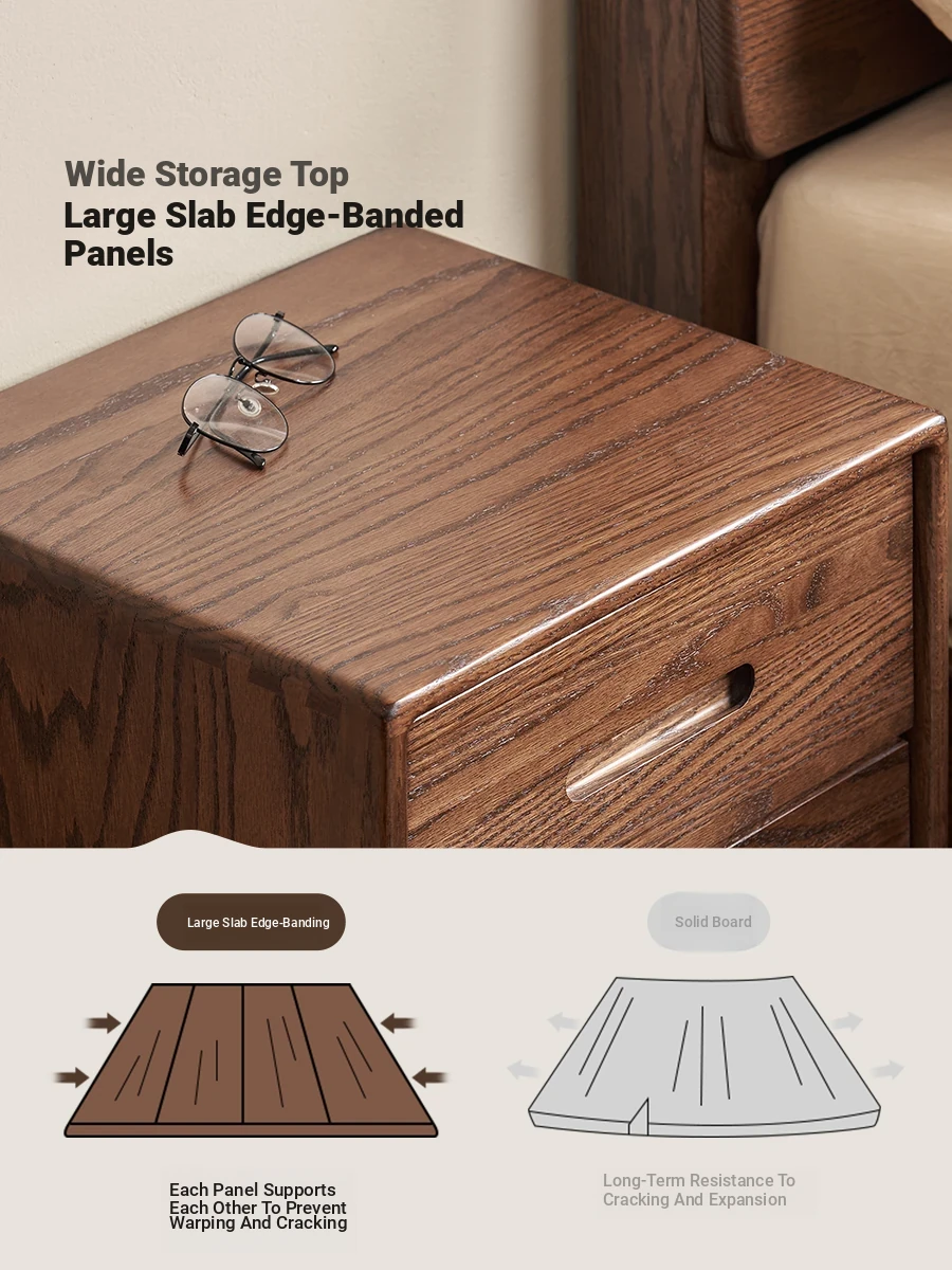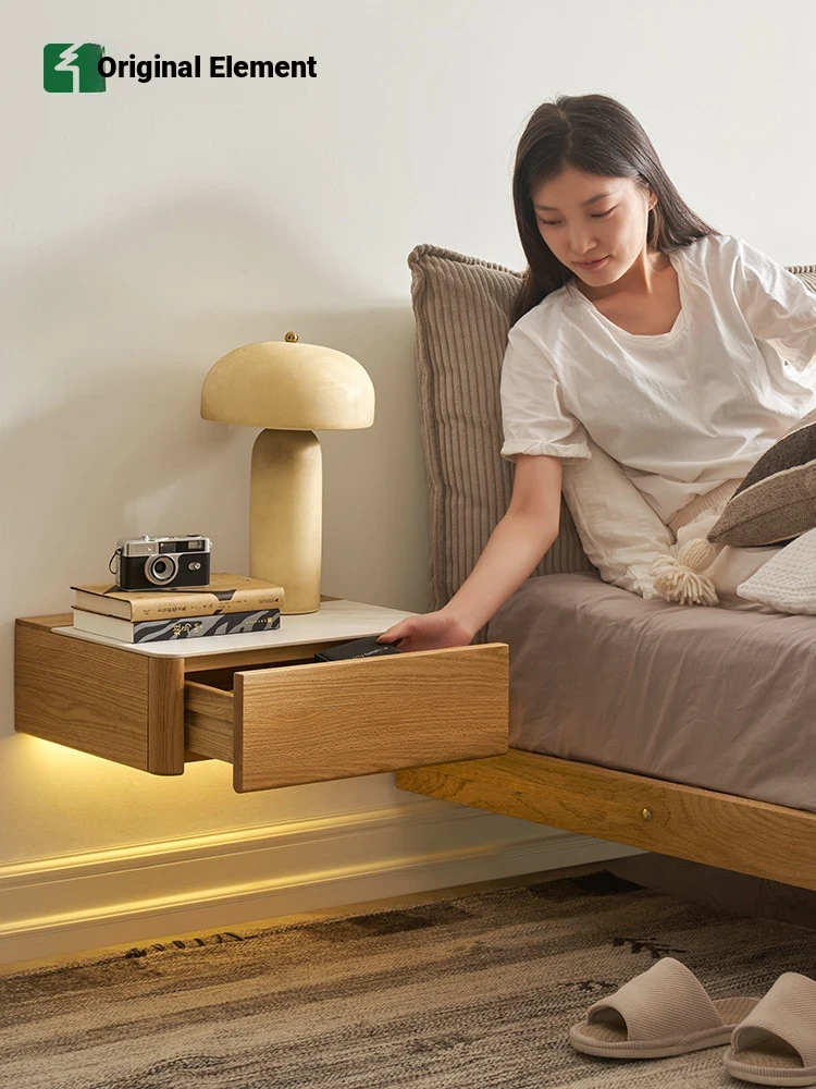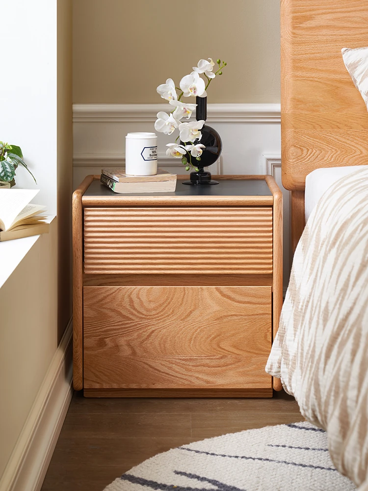 Modern Minimalist Solid Wood Nightstand with Oak and Rock Plate Top – Stylish Bedside Storage Cabinet L7021