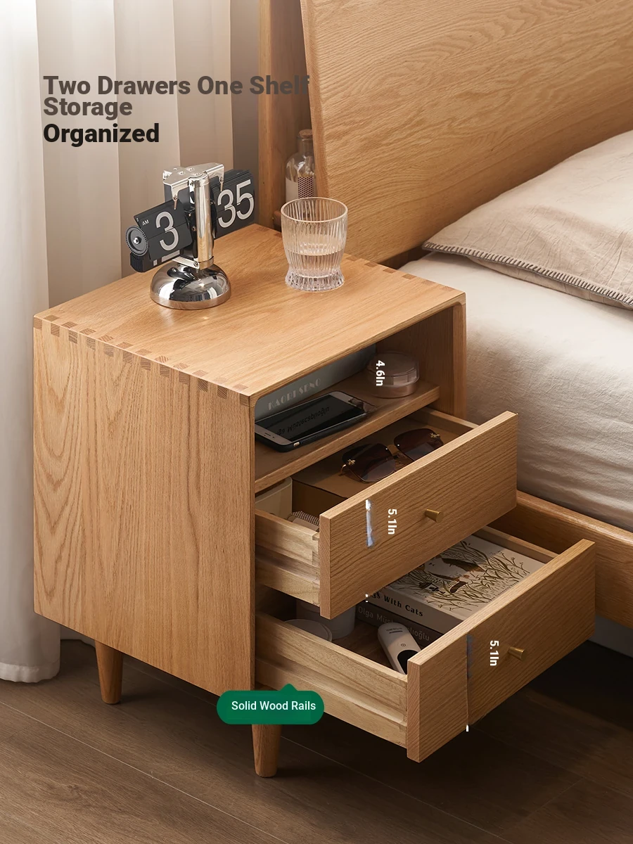 Modern Minimalist Solid Wood Nightstand - Oak Storage Cabinet for Small Spaces, Perfect for Bedroom Organization (Model A5023) - Elevate Your Home Decor!