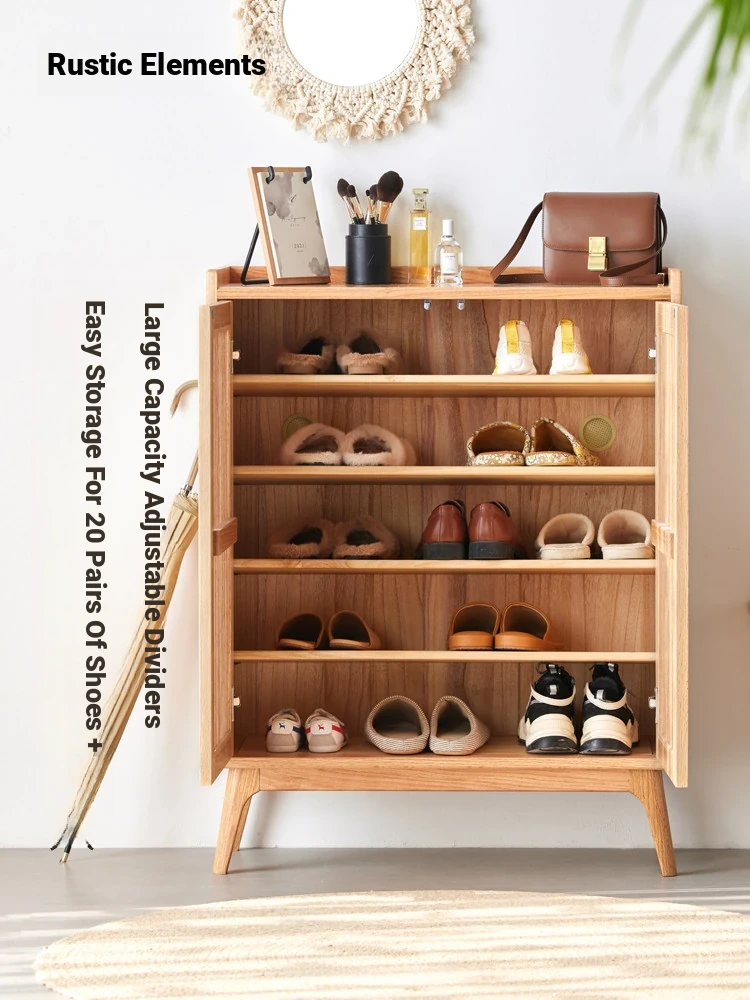 Modern Solid Wood Shoe Cabinet - Scandinavian Oak Shoe Rack with Doors, Minimalist Entryway Storage for Small Spaces - H9092