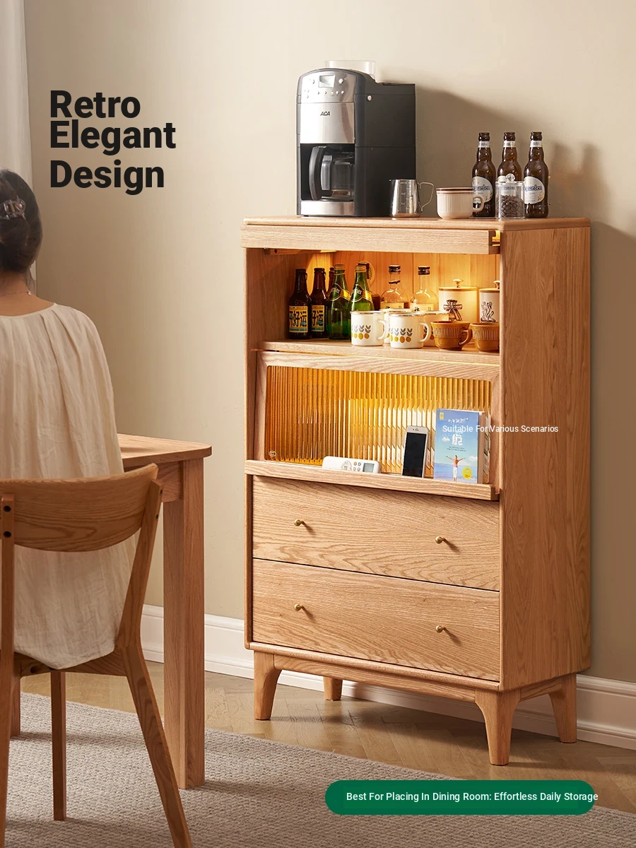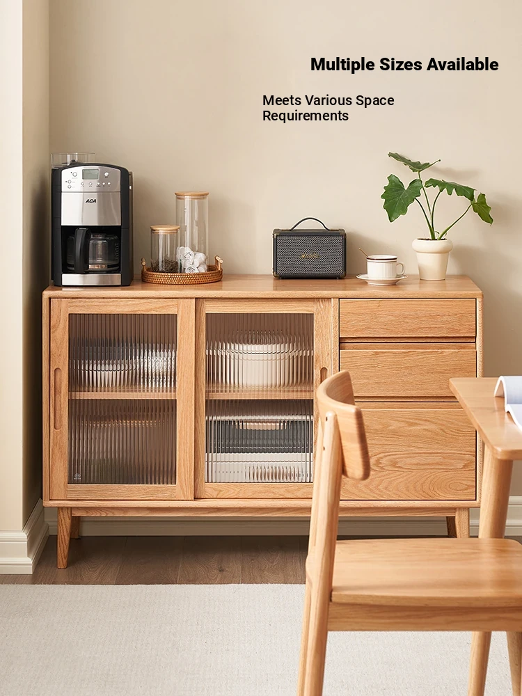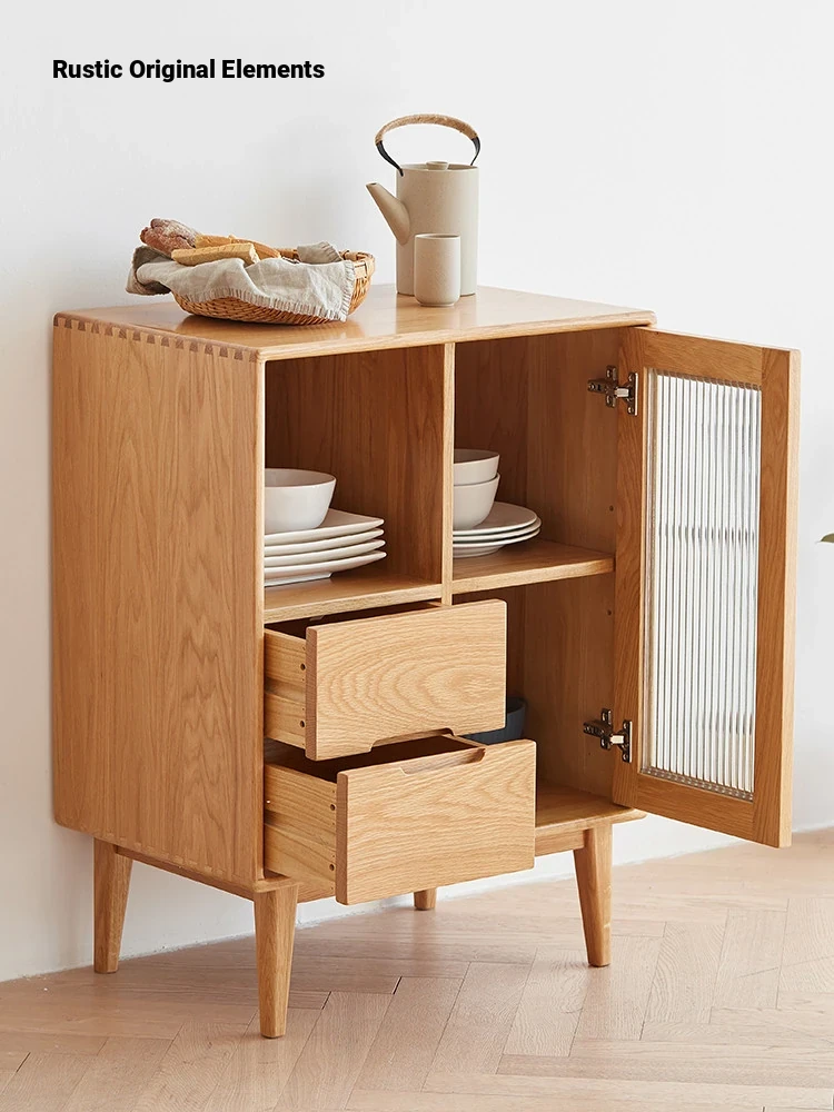 Premium Solid Wood Sideboard - Nordic Style Storage Cabinet for Living Room, Oak Minimalist Design, Perfect for Storing Bowls and Tea Supplies (Model: F8141)