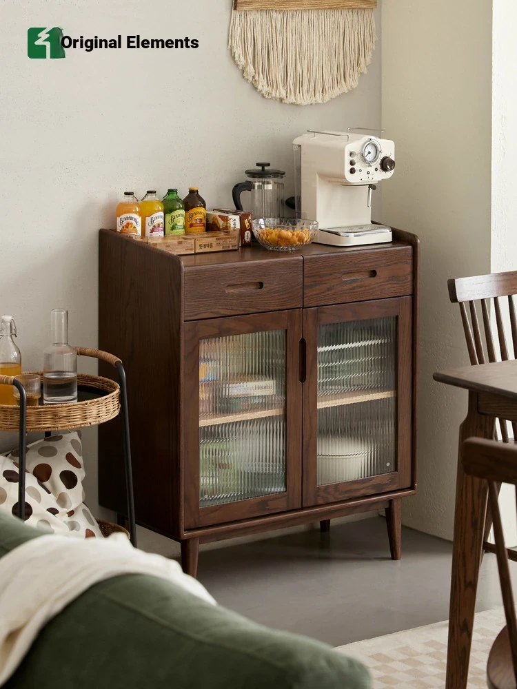 Elevate Your Dining Space with Our Original Element Solid Wood Sideboard - Functional Oak and Walnut Storage Cabinet, Minimalist Design for Dining Rooms and Tea Areas - Model F8141
