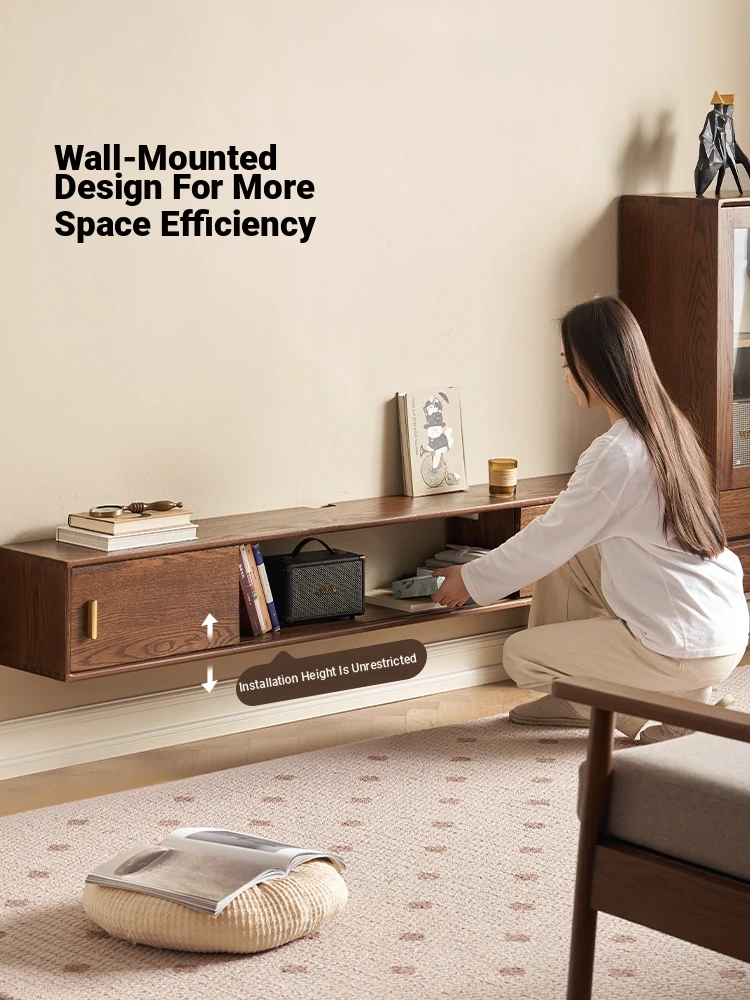 Stylish Solid Wood Floating TV Stand in Black Walnut – Modern Oak Wall-Mounted Cabinet for Your Living Room, Model H7082