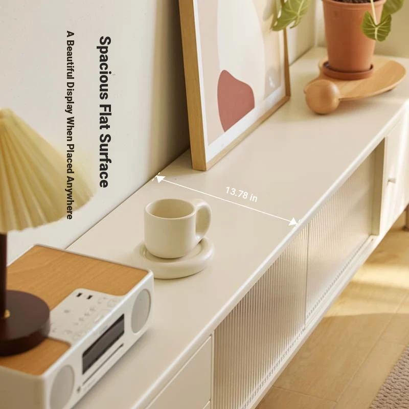 Natural Solid Wood TV Cabinet - Creamy Minimalist Design for Small Spaces, Stylish Living Room Storage Solution - Model N7081