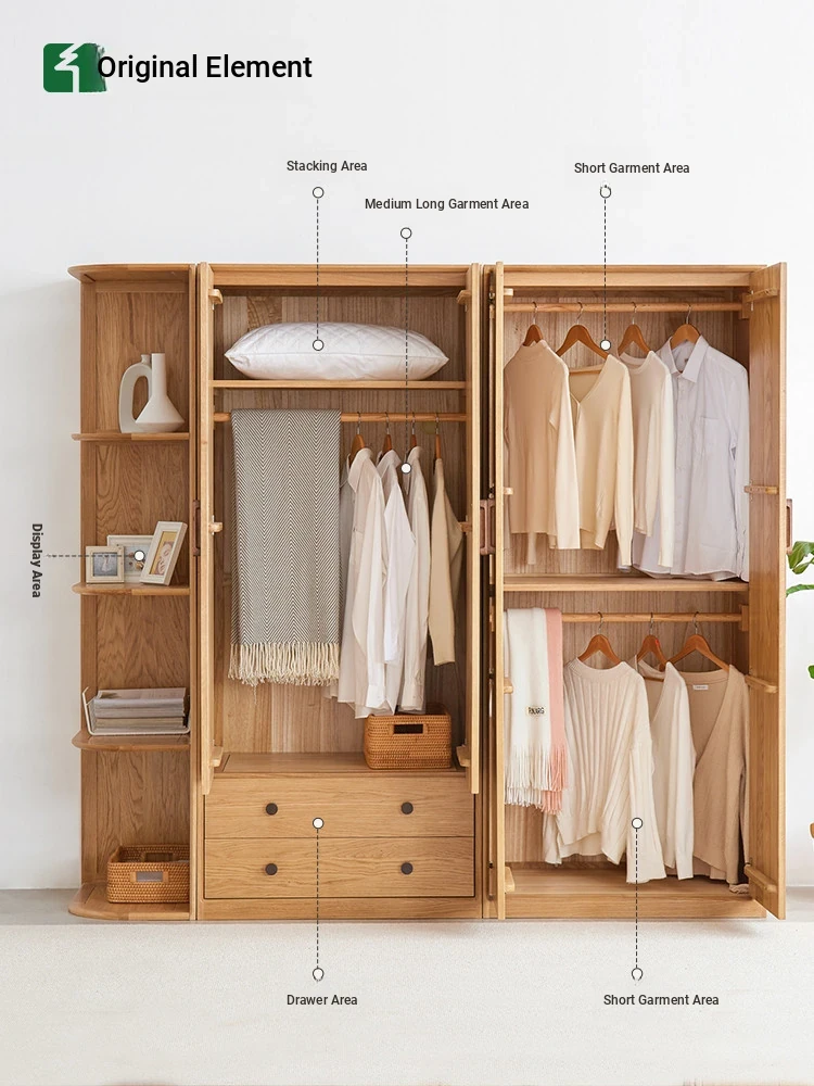 "Scandinavian Minimalist Solid Wood Wardrobe - H7041 Modern Bedroom Storage Cabinet for Stylish Organization"