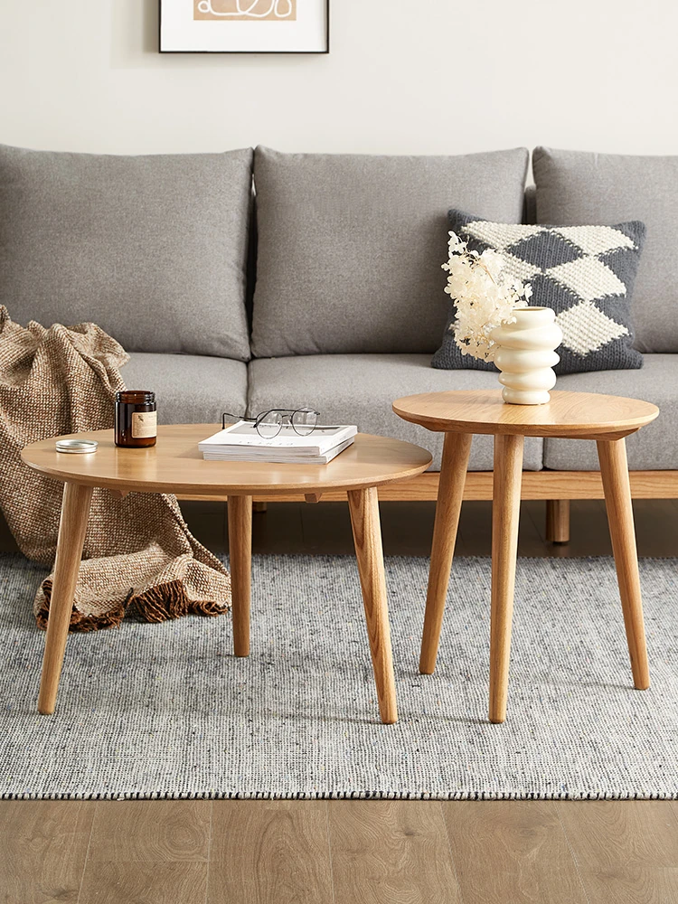 Minimalist Solid Wood Coffee Table - Nordic Japanese Round Side Table for Small Living Rooms - A1184