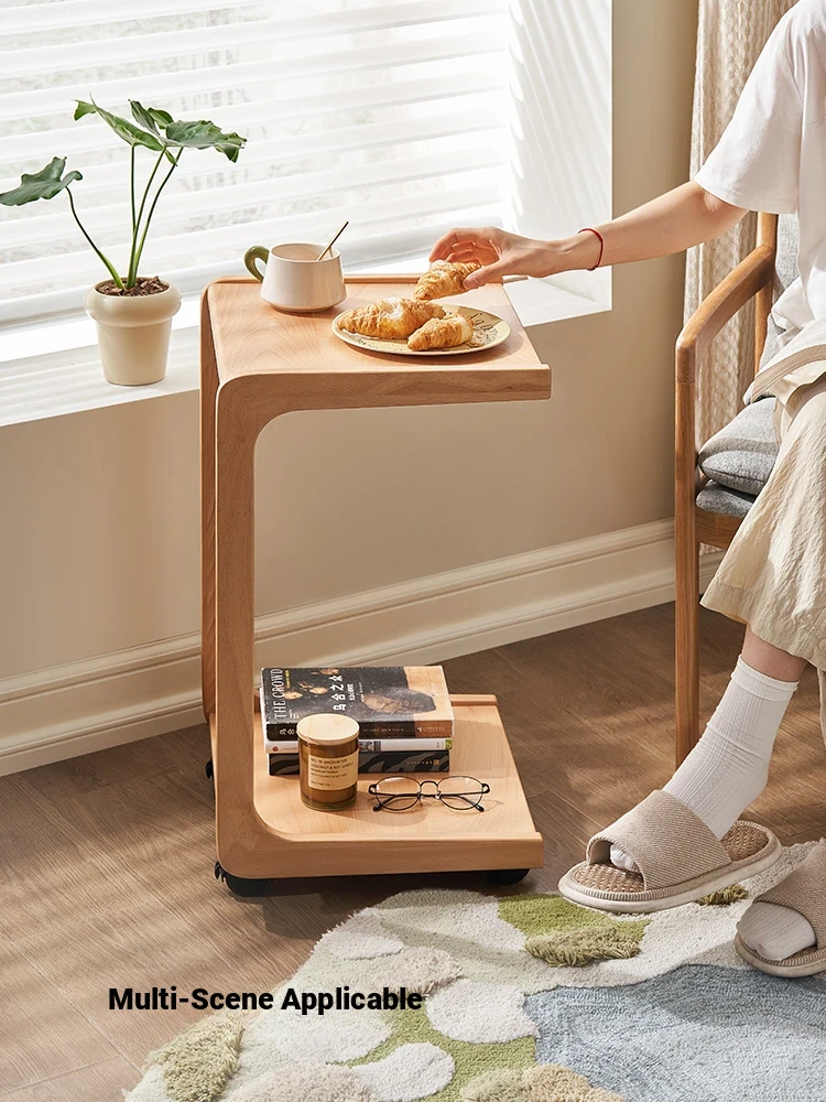 "Minimalist Solid Wood Tea Table - A8072, Modern Oak Double-Layer Coffee Table for Living Room and Balcony, Stylish Small Tea Desk"