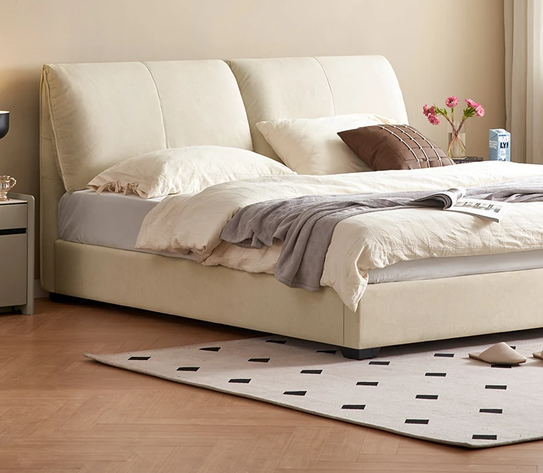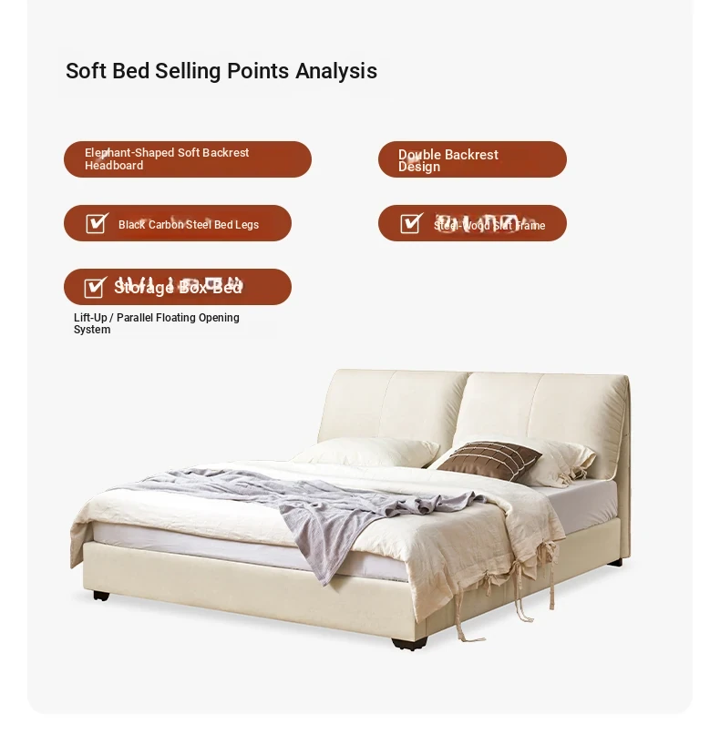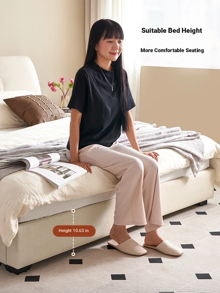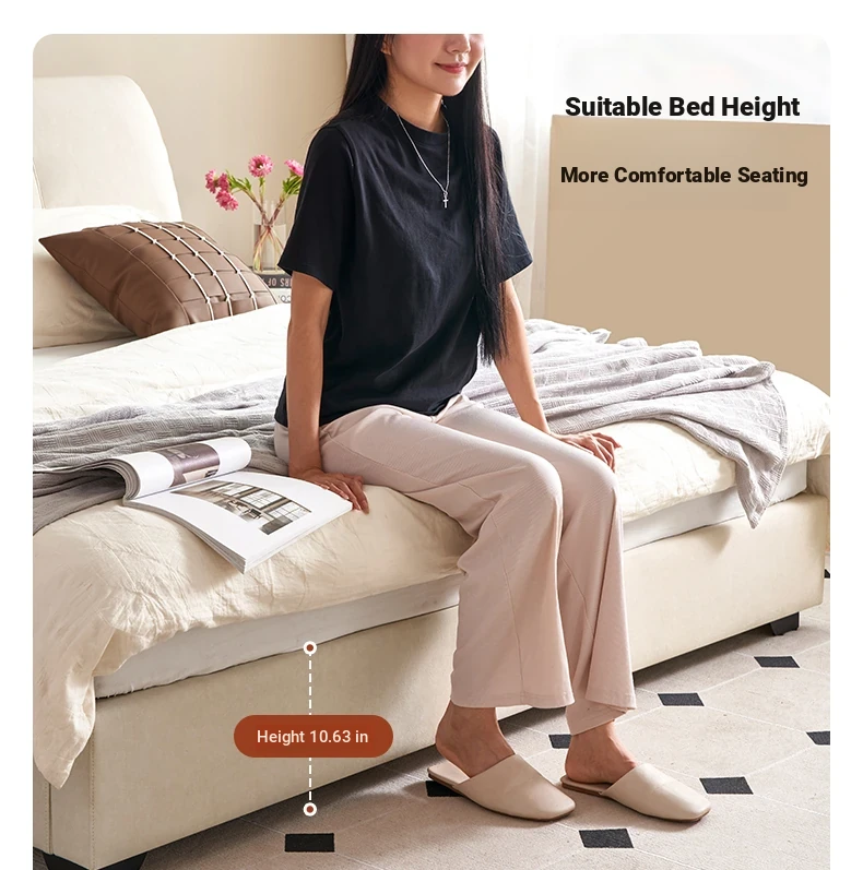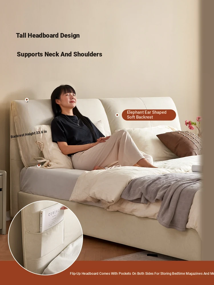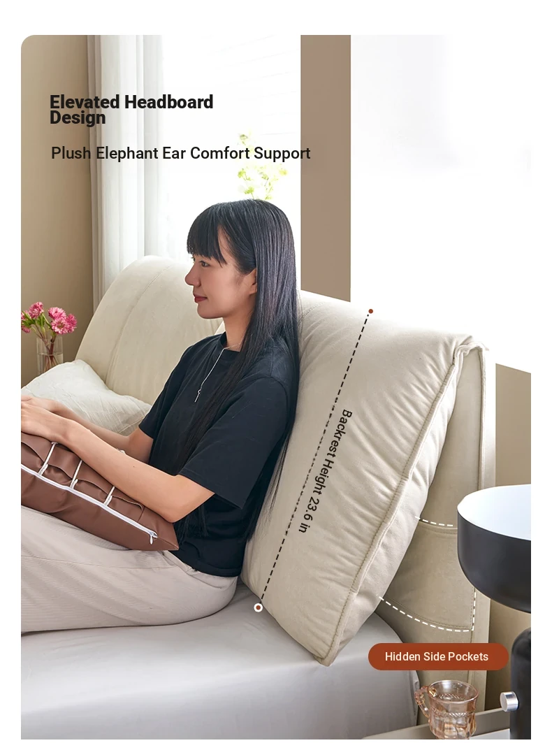 "Original Element Fabric Bed with Non-Interfering Cat Scratch Fabric, Elephant Ear Design, Cream-colored Double Bed with Storage Box N501C – Perfect for Pet Owners!"