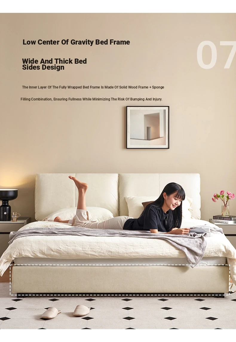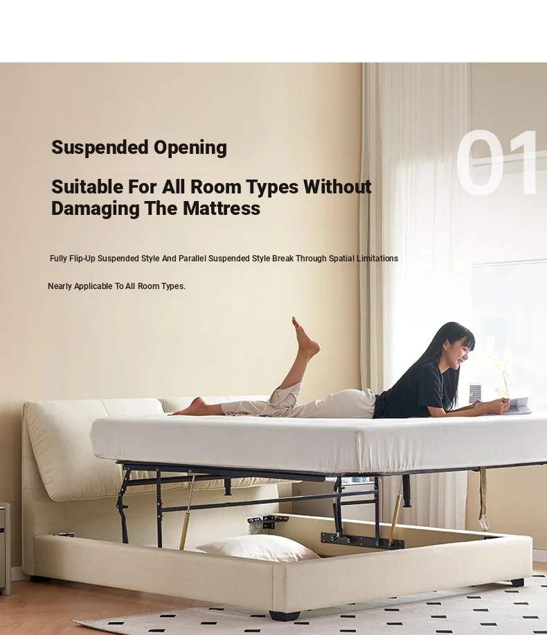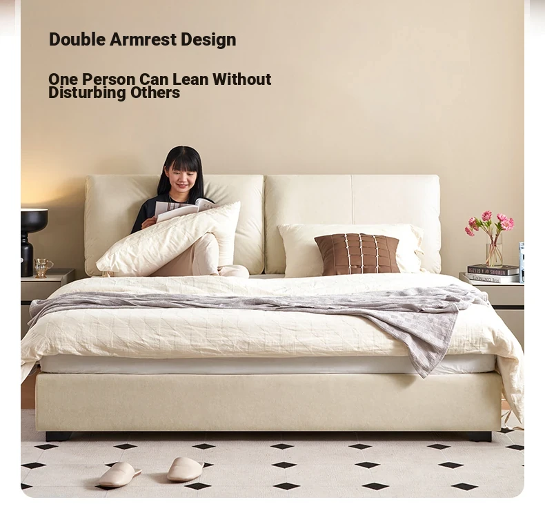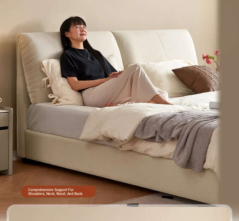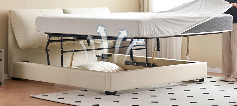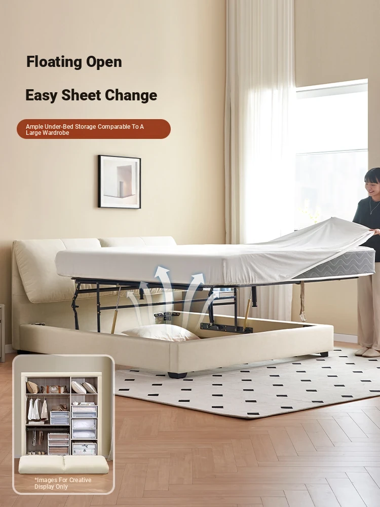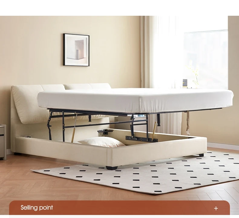 "Original Element Fabric Bed with Non-Interfering Cat Scratch Fabric, Elephant Ear Design, Cream-colored Double Bed with Storage Box N501C – Perfect for Pet Owners!"