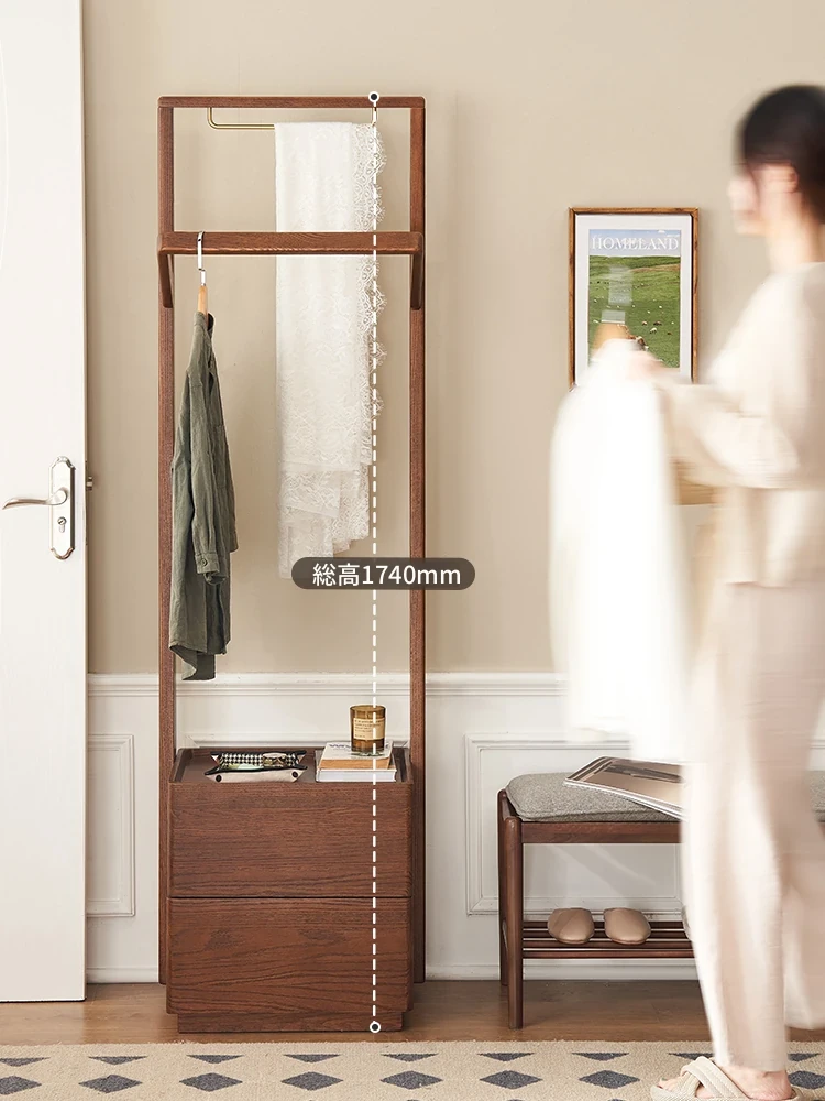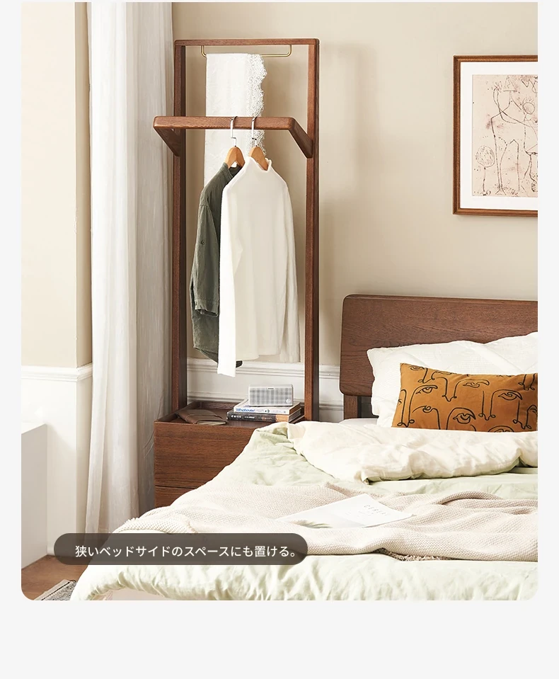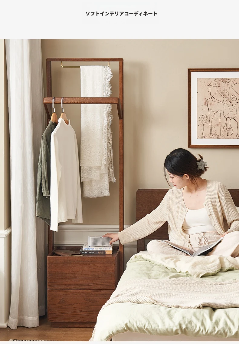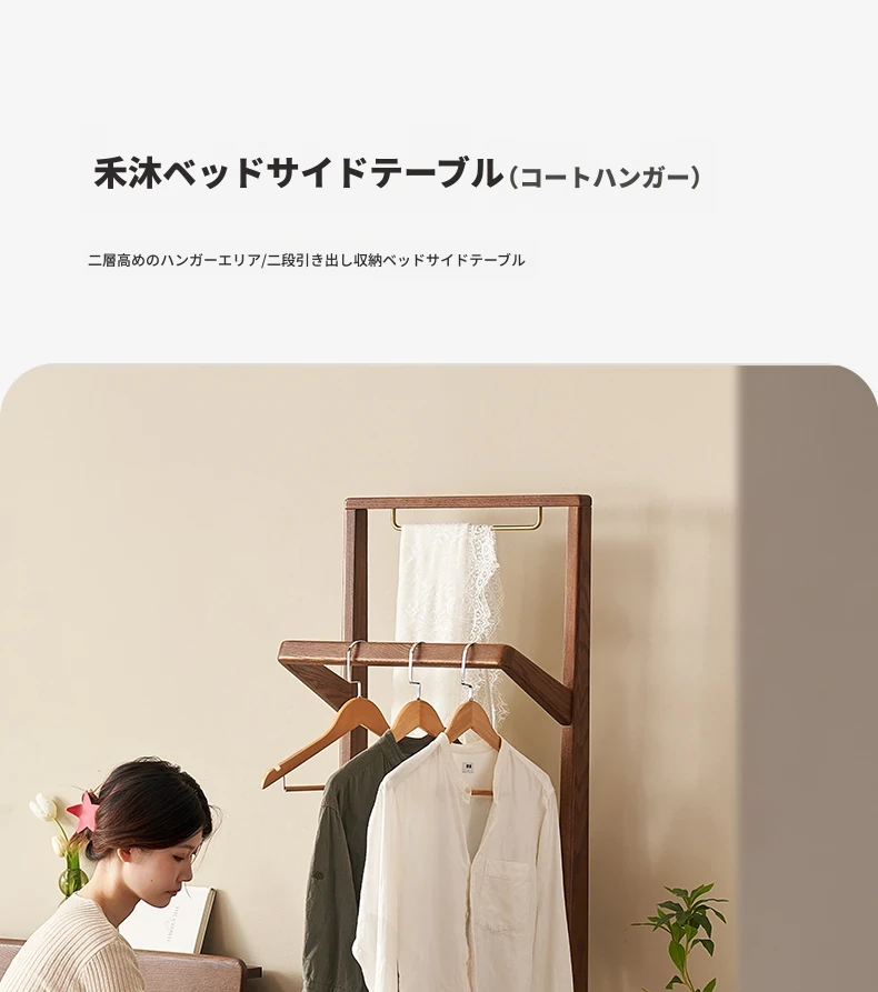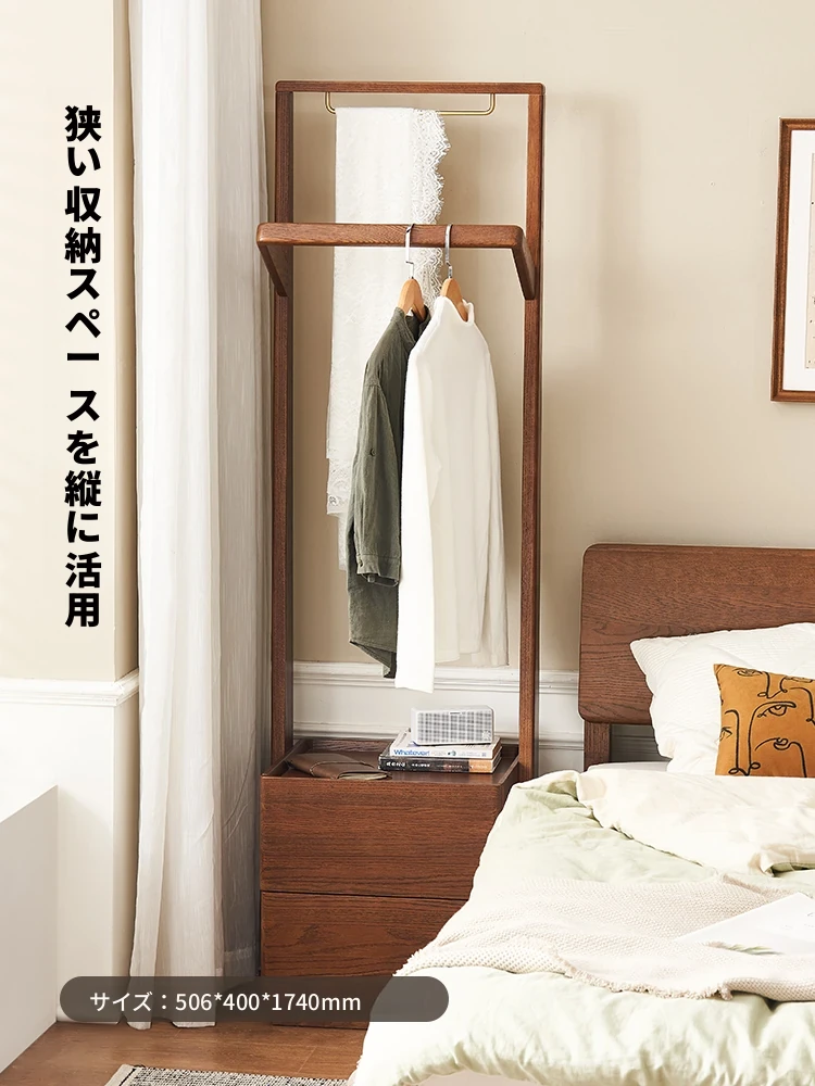 【オーク-ウォールナット色】禾沐寝室用ナイトテーブル(ハンガーラック)