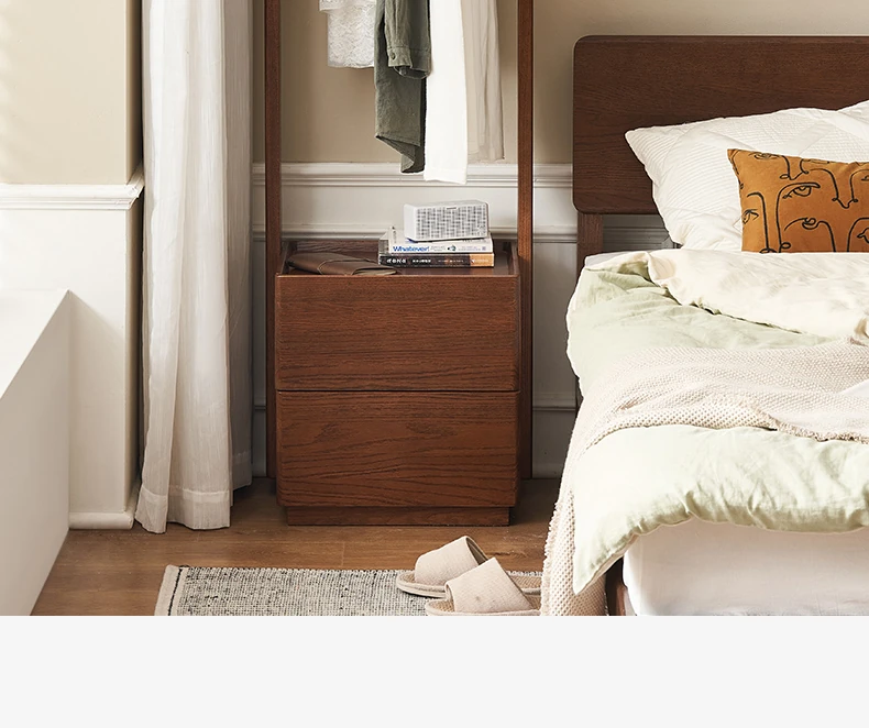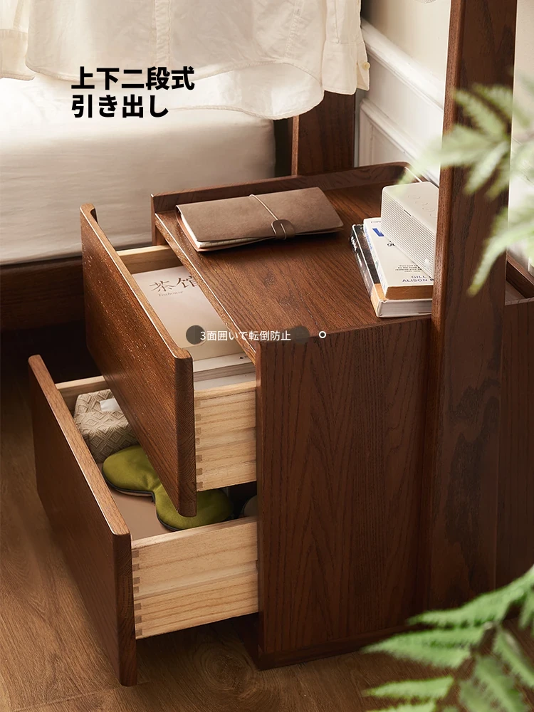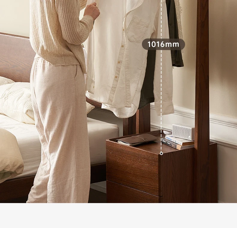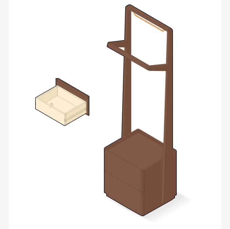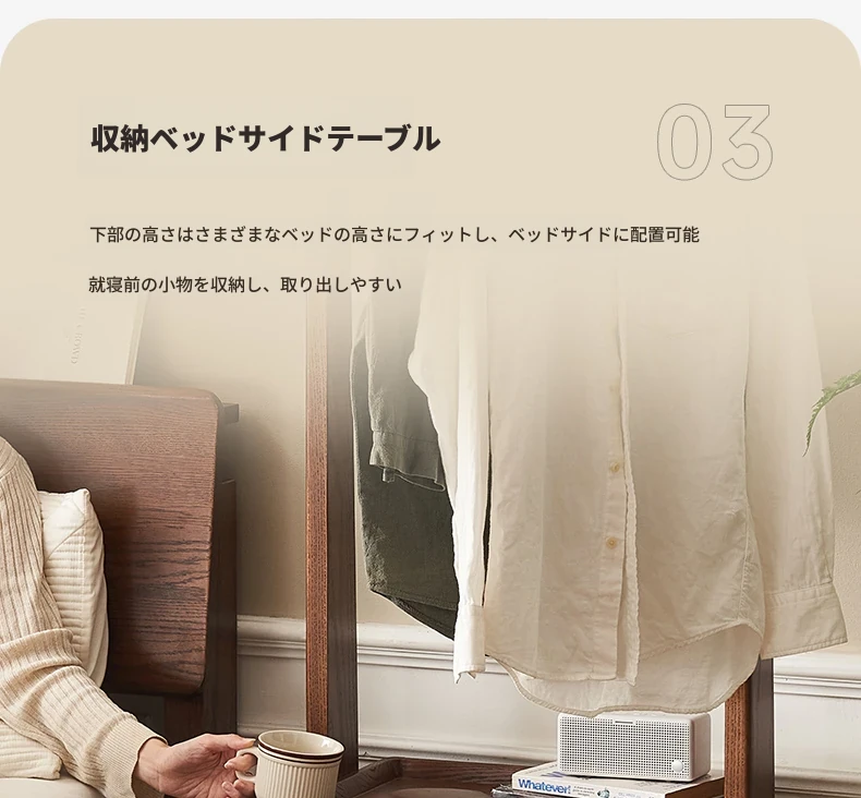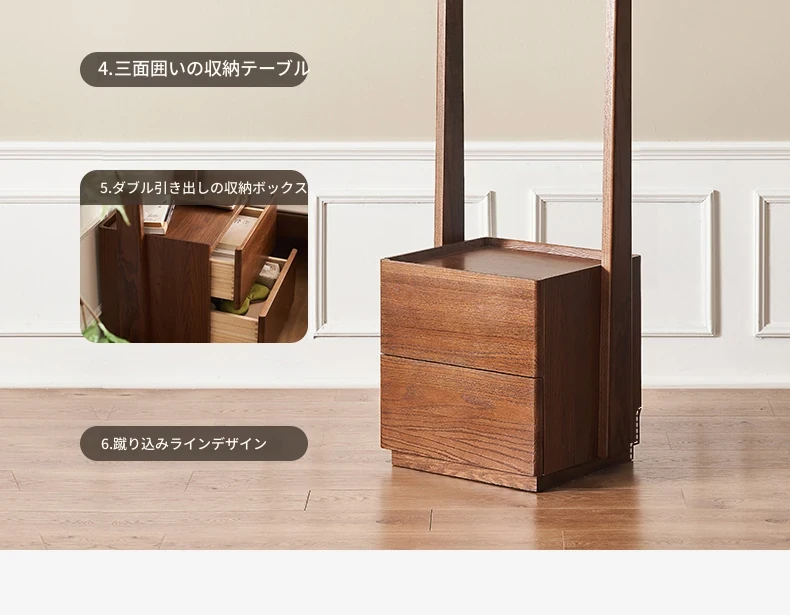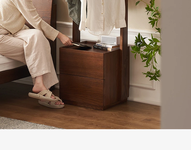 【オーク-ウォールナット色】禾沐寝室用ナイトテーブル(ハンガーラック)