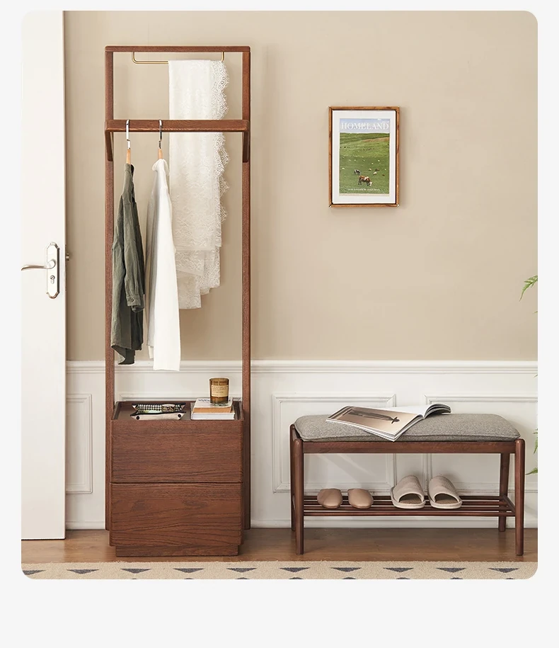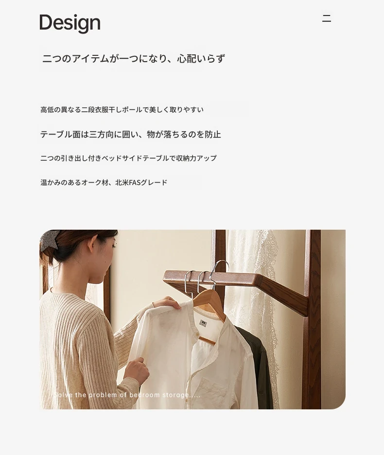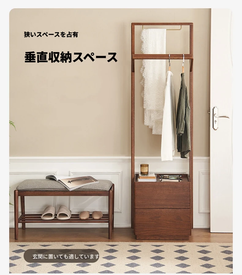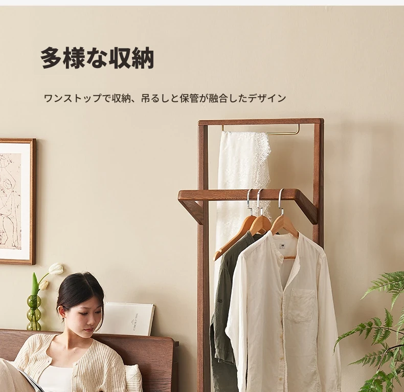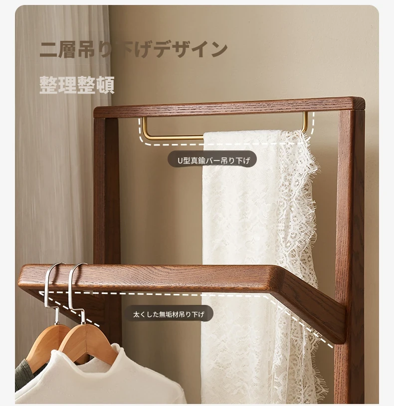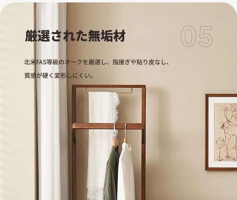 原材料そのままの無垢材使用!モダンでシンプルなデザイン、オーク製の多機能コートラック。収納力抜群で、衣類や小物もスッキリ整理!L7026号。あなたのお部屋をより快適に演出します。