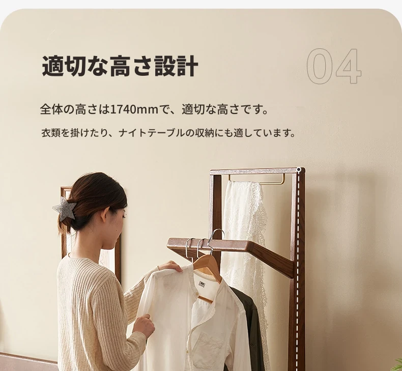 原材料100%無垢材使用!モダンでミニマルなデザインのコートハンガー&全身鏡 小スペース向けの寝室に最適 H6221