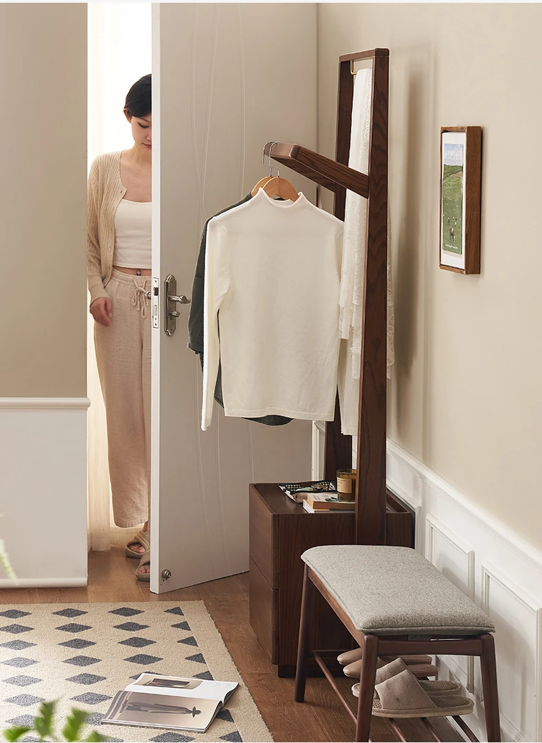 原汁原味!全実木のモダンミニマリストコートラック - ベイジュウ材使用、コンパクトな寝室に最適のハンガーラック G6221。あなたの空間を洗練させる美しさ!