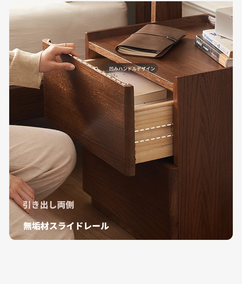 自然な木の美しさを讃える!オールウッド製の北欧スタイル シェルフ - オーク&ウォールナット仕上げのシンプルなソファサイドテーブル F8191。おしゃれな収納でお部屋を整え、心地よい空間を演出します!
